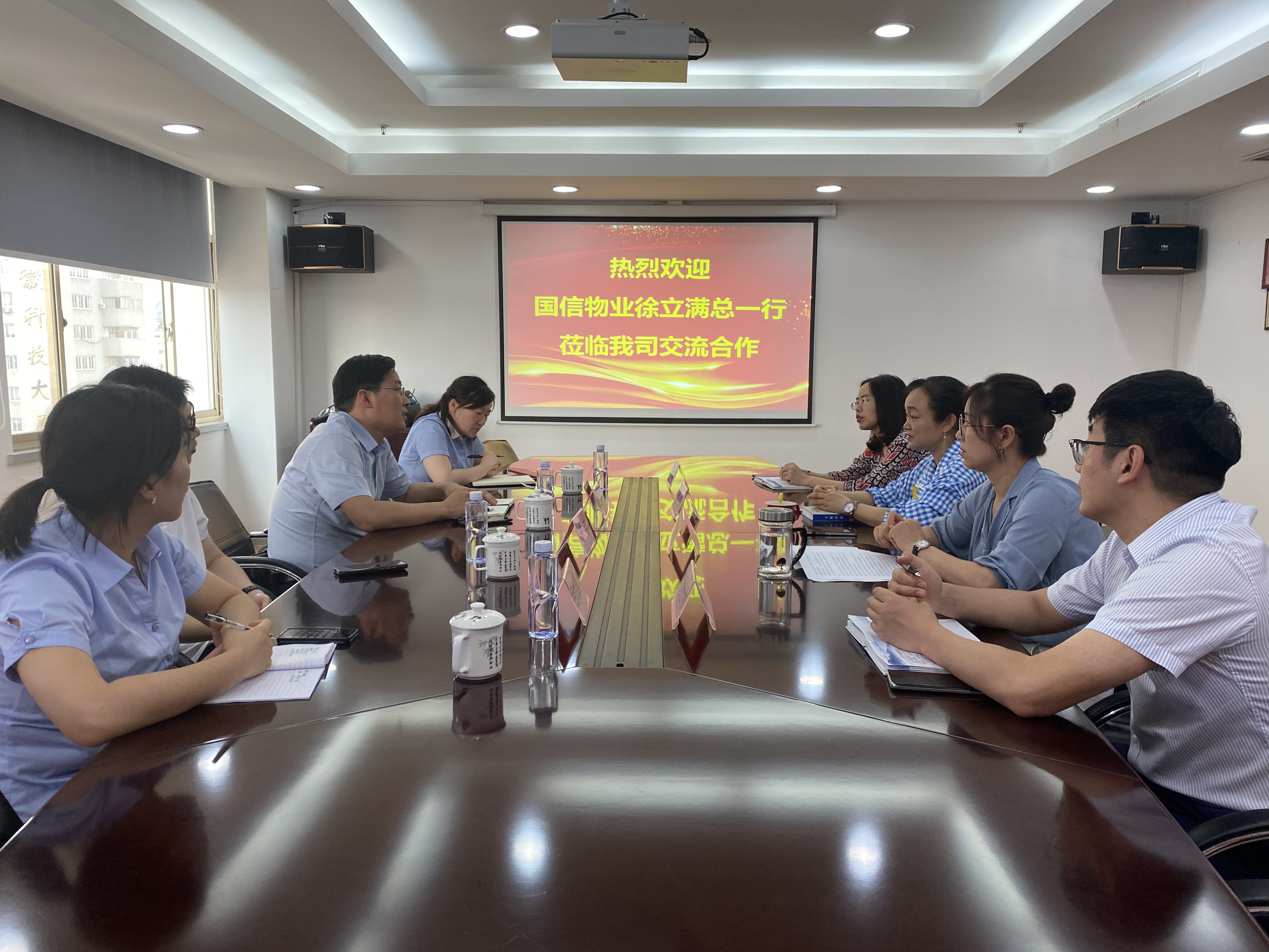 國元保險(xiǎn)經(jīng)紀(jì)公司總經(jīng)理潘惠首先對國信物業(yè)一行來訪表示誠摯的歡迎,并對公司基本情況和2022年經(jīng)營發(fā)展情況進(jìn)行簡要介紹,并對兩家單位未來加強(qiáng)聯(lián)動(dòng)、深度合作表達(dá)了希冀和憧憬。隨后,國信物業(yè)徐總圍繞國信物業(yè)公司業(yè)務(wù)和服務(wù)情況進(jìn)行了介紹,并表示希望與國元保險(xiǎn)經(jīng)紀(jì)公司在互信互惠的基礎(chǔ)上加強(qiáng)合作,實(shí)現(xiàn)共贏。