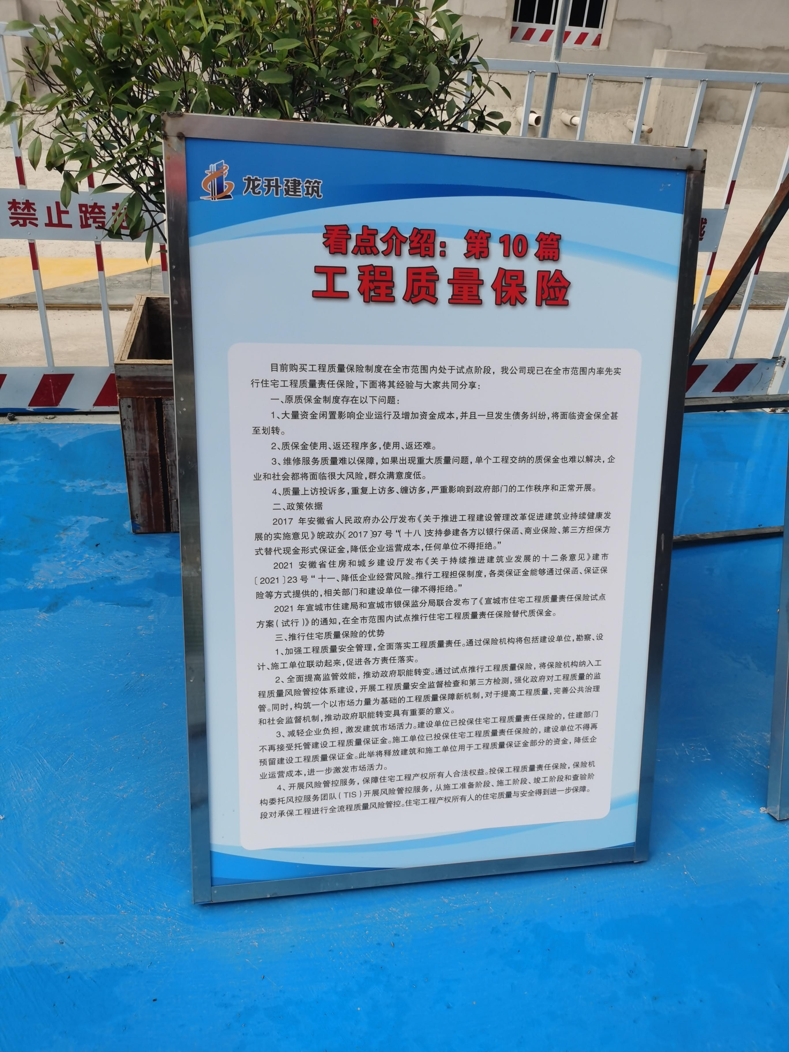 房屋住宅關(guān)乎民生福祉。為更好地提高住宅工程質(zhì)量水平,減少住宅工程質(zhì)量投訴,維護住宅所有權(quán)人的合法權(quán)益,國元保險經(jīng)紀公司積極推動住宅工程質(zhì)量責任保險項目,在宣城市住建部門的統(tǒng)籌和引導(dǎo)下,在全市范圍內(nèi)開展住宅工程質(zhì)量責任保險制度試點工作。一方面,通過保險的形式代替建設(shè)工程質(zhì)量保證金,減輕企業(yè)負擔,激發(fā)建筑市場活力。另一方面,引進TIS風(fēng)險服務(wù)機構(gòu),對承保工程進行全流程質(zhì)量風(fēng)險管控,進一步保障住宅工程產(chǎn)權(quán)所有人合法權(quán)益,提高全市住宅工程質(zhì)量水平。