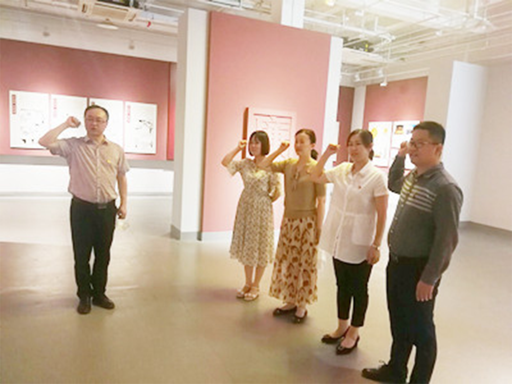 參觀后,支部書記與全體黨員重溫了入黨誓詞。